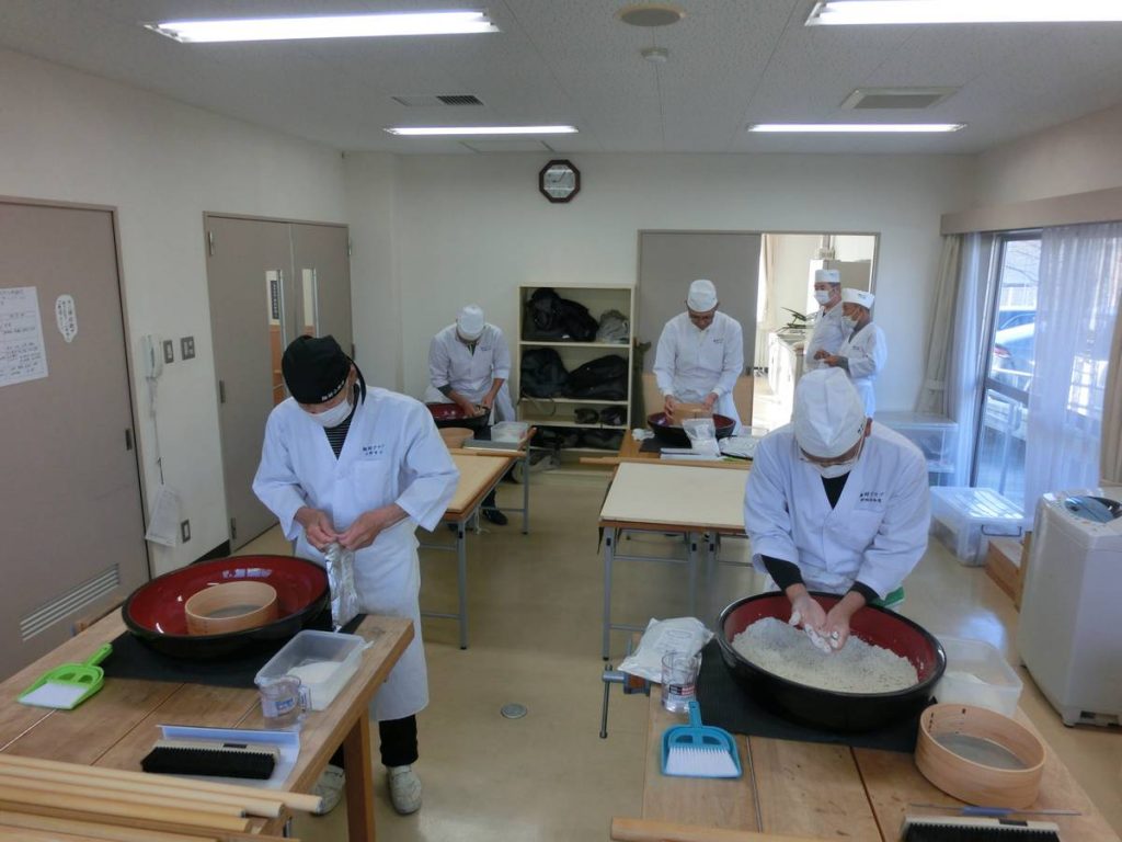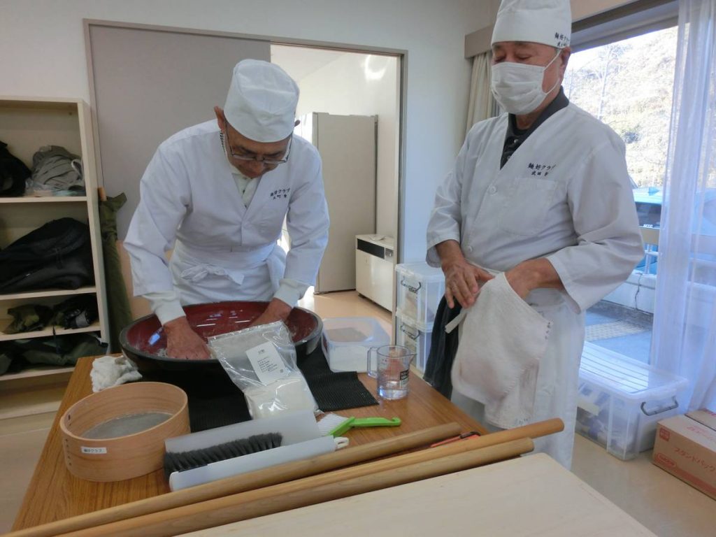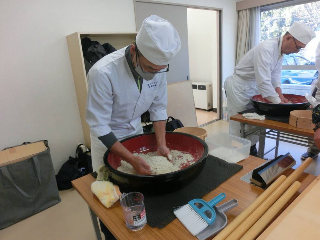 試食をおこなうので、小野寺さん、大町さん、伊地知さん、佐藤の4人が試食用そばを打ちました。